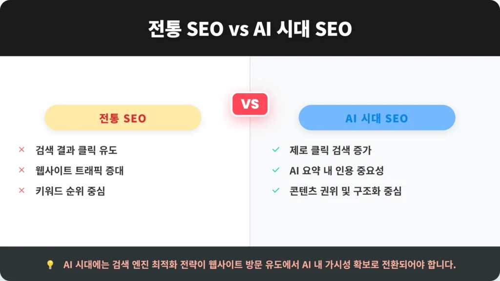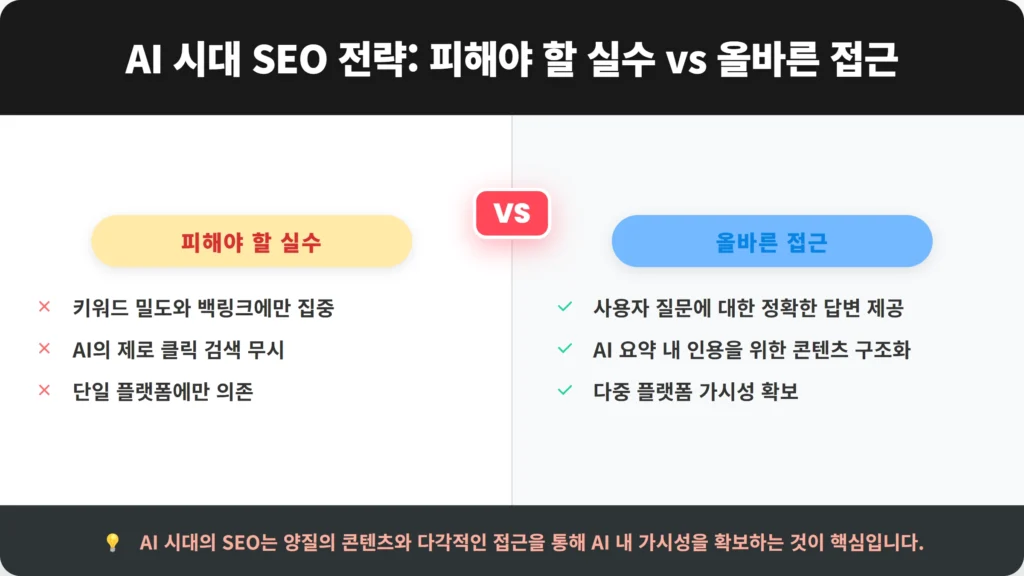 - 제로 클릭 검색의 이해: AI가 직접 답변을 제공하는 경향을 인지하고, 이에 맞는 콘텐츠 전략을 수립해야 합니다.