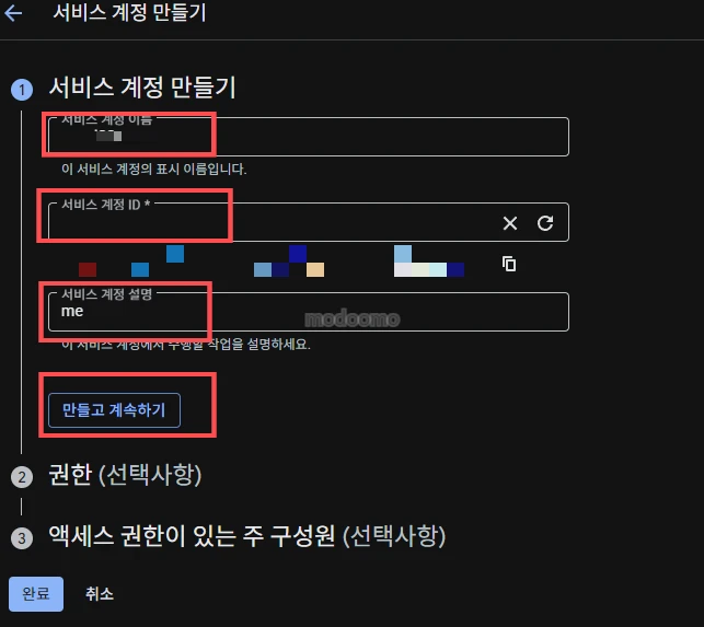 - ☑ 서비스 계정이 JSON 키와 함께 생성되었는가?